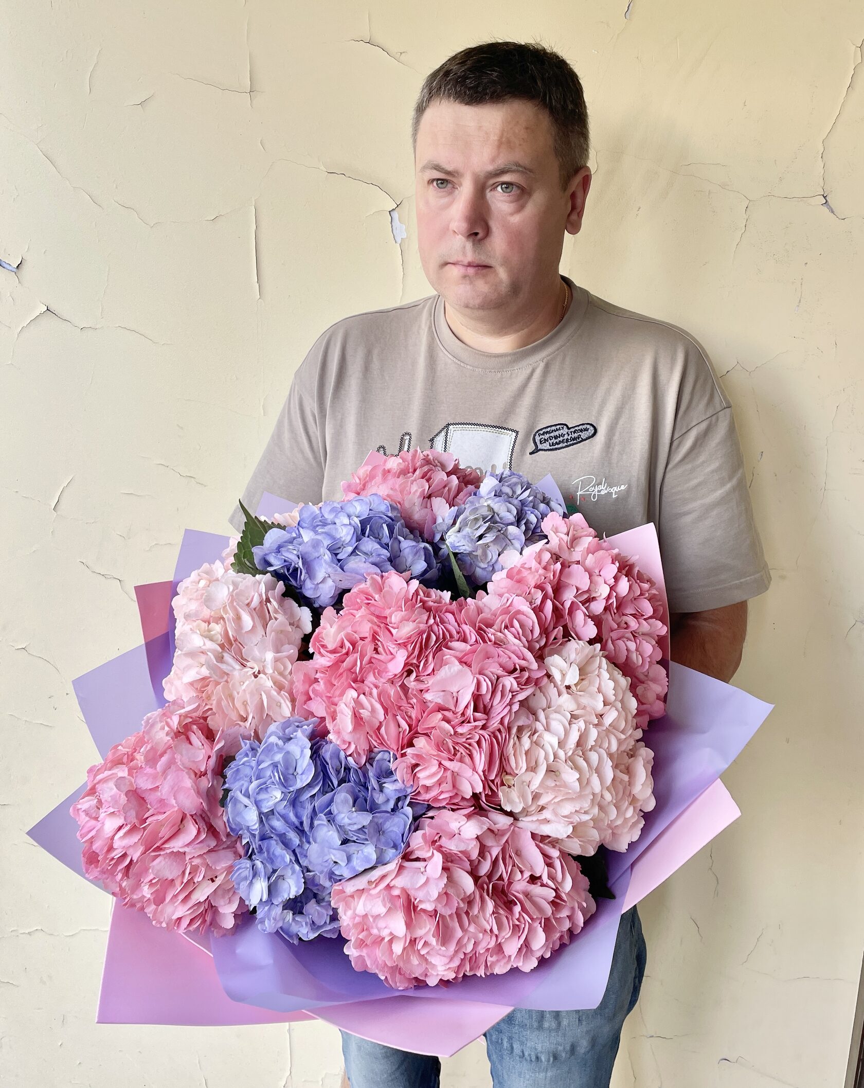Состав букета: стоимость вальируется от колличества гортензий, стоимость одной гортензии - 600р